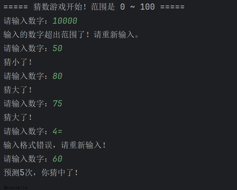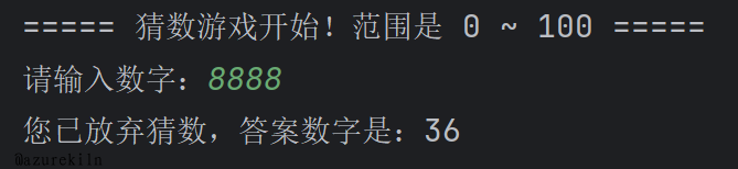print("===== 猜数游戏开始!范围是 0 ~ 100 =====")
