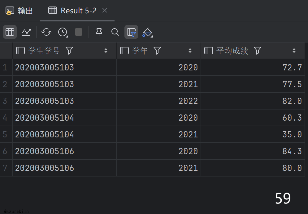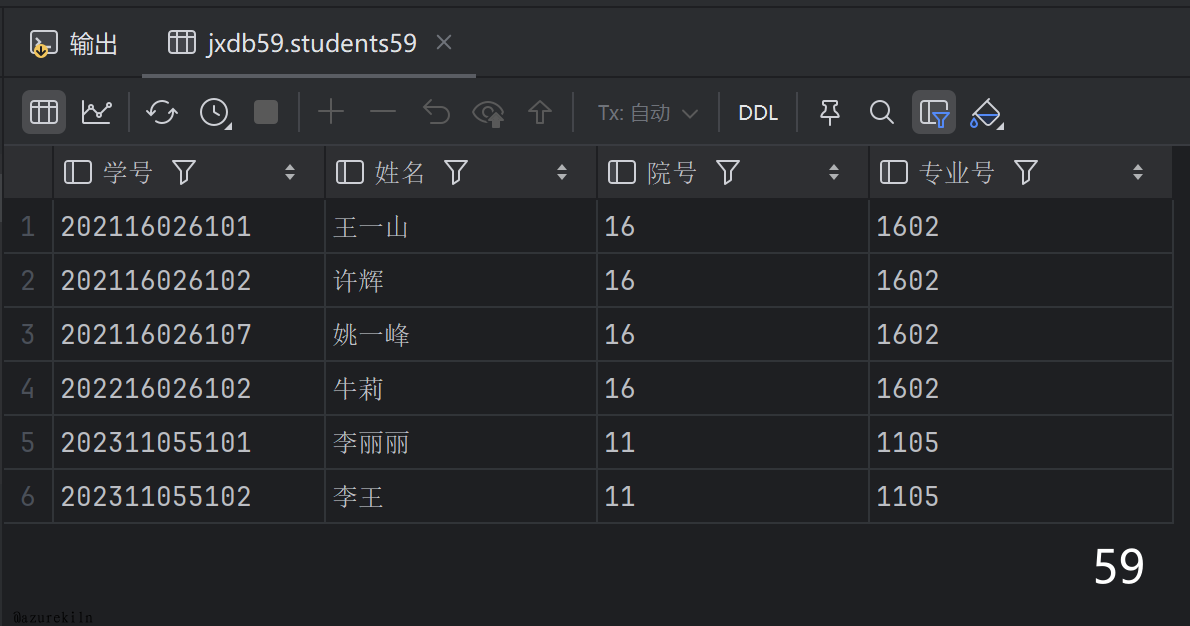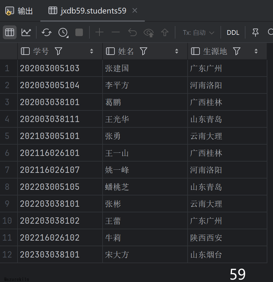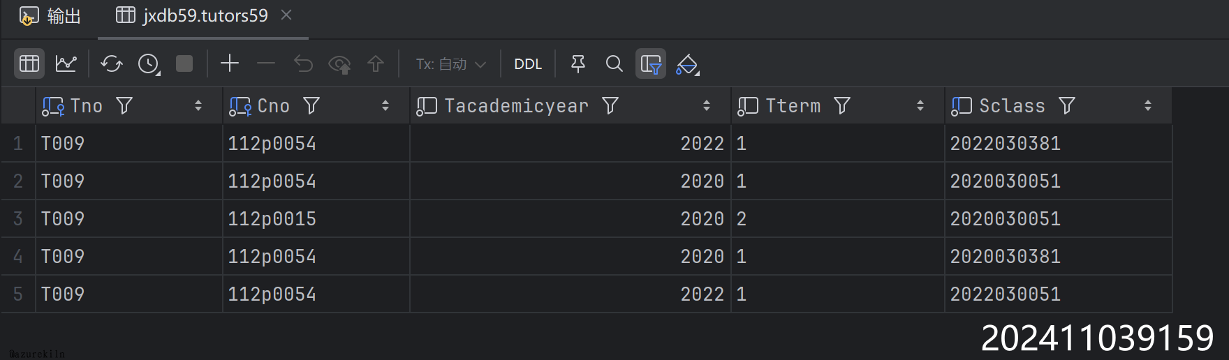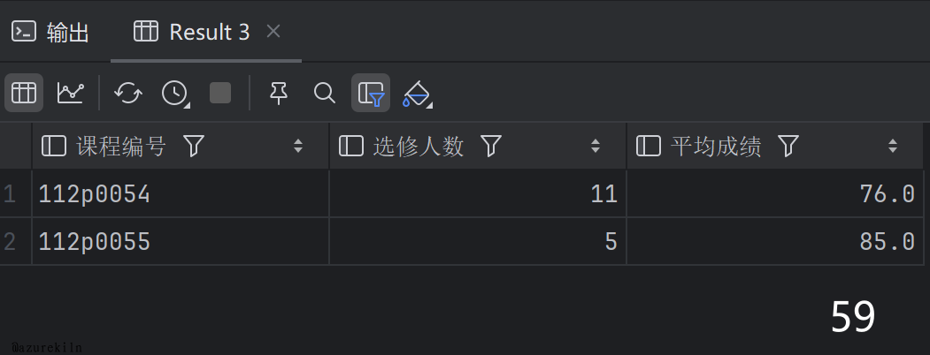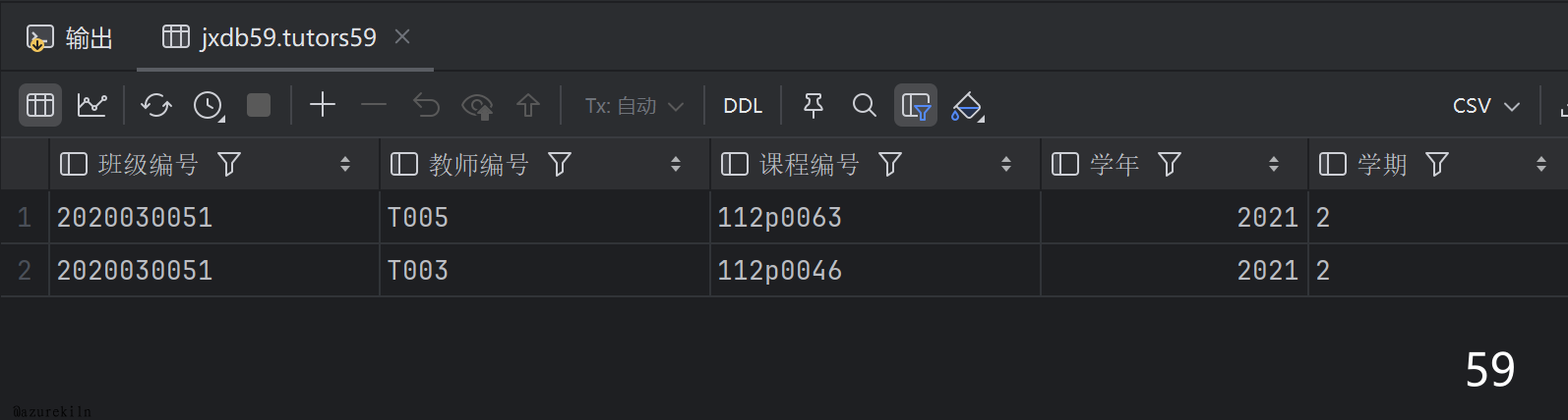 (2)将查询结果截图,截图的右下角要求标上你的学号最后两位。USE jxdb59; SELECT * FROM courses59;