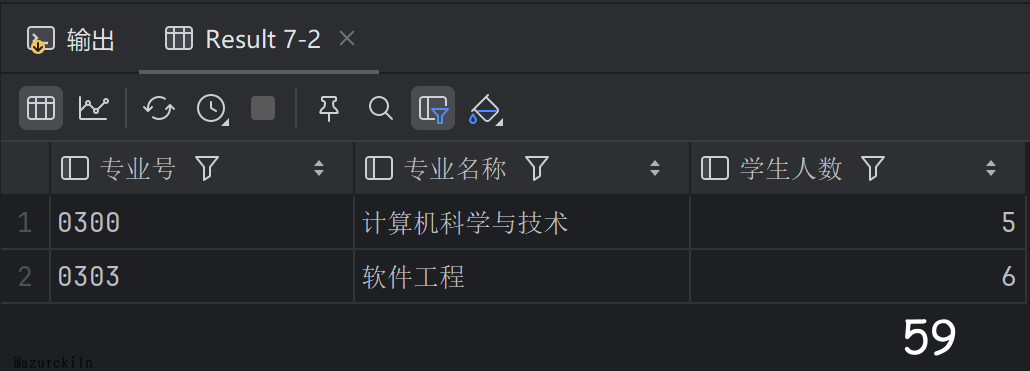 请写出下列查询操作的SQL语句:"查询计算机与信息工程学院的各个专业的学生数,查询结果显示专业号(Mno)、专业名称(Mname)、学生人数,按专业号升序排序,并用中文名显示属性列"USE jxdb59; SELECT m.Mno AS '专业号', m.Mname AS '专业名称', COUNT(*) AS '学生人数' FROM major59 m JOIN students59 s ON m.Mno = s.Mno JOIN department59 d ON m.Dno = d.Dno WHERE d.Dname = '计算机与信息工程学院' GROUP BY m.Mno, m.Mname ORDER BY m.Mno;